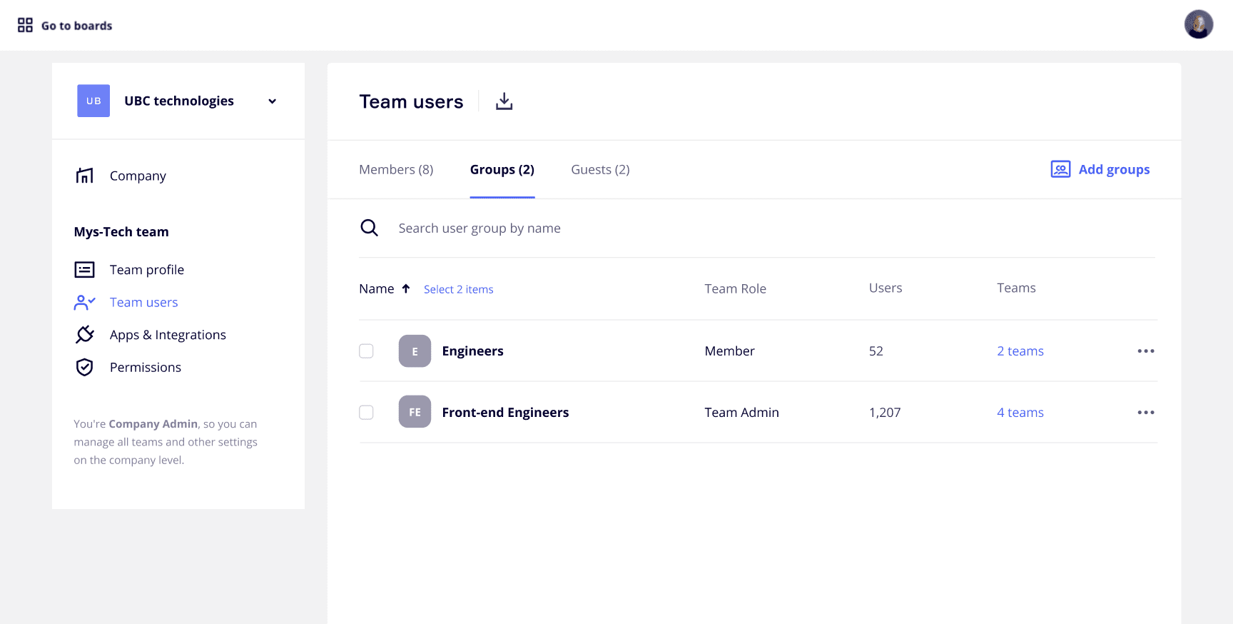 Invite user groups to projects and boards to collaborate