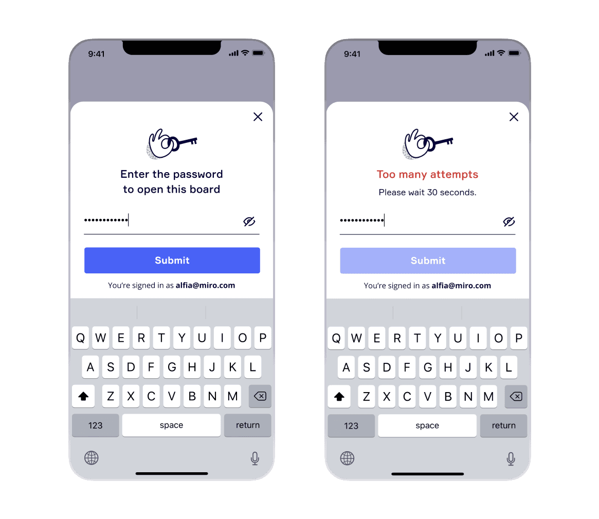 Board shared with password protection on a mobile device